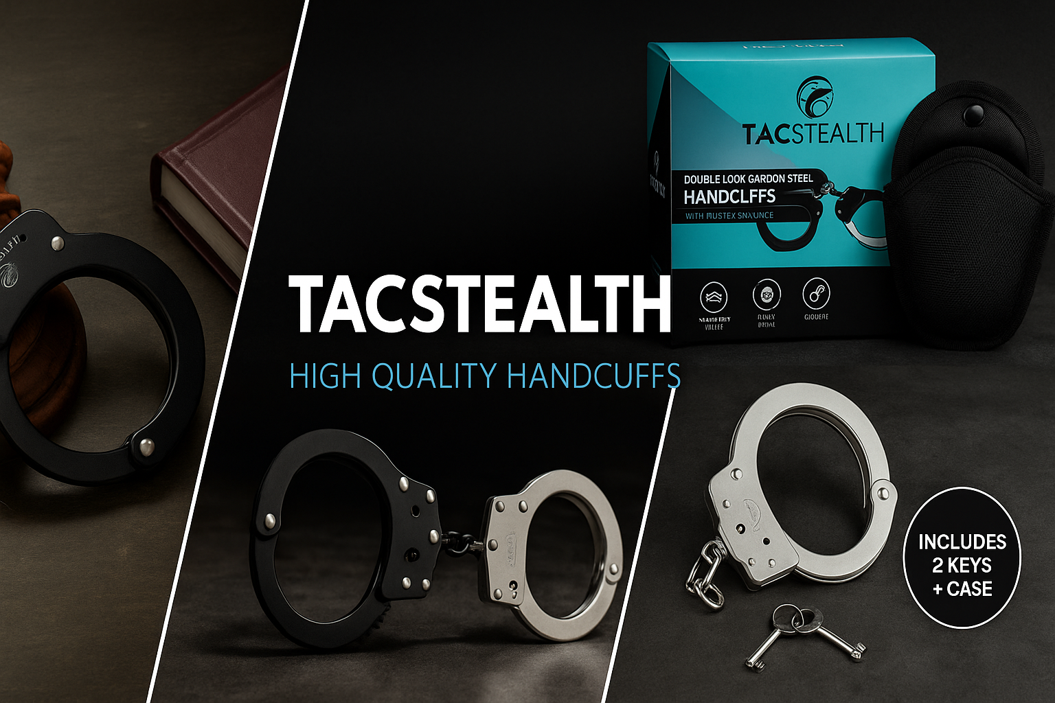 Heavy Duty Steel Handcuffs – Professional Grade Black Restraints with Double Lock, Rust-Resistant Finish, Two Keys & Carry Case – Durable Security & Tactical Use