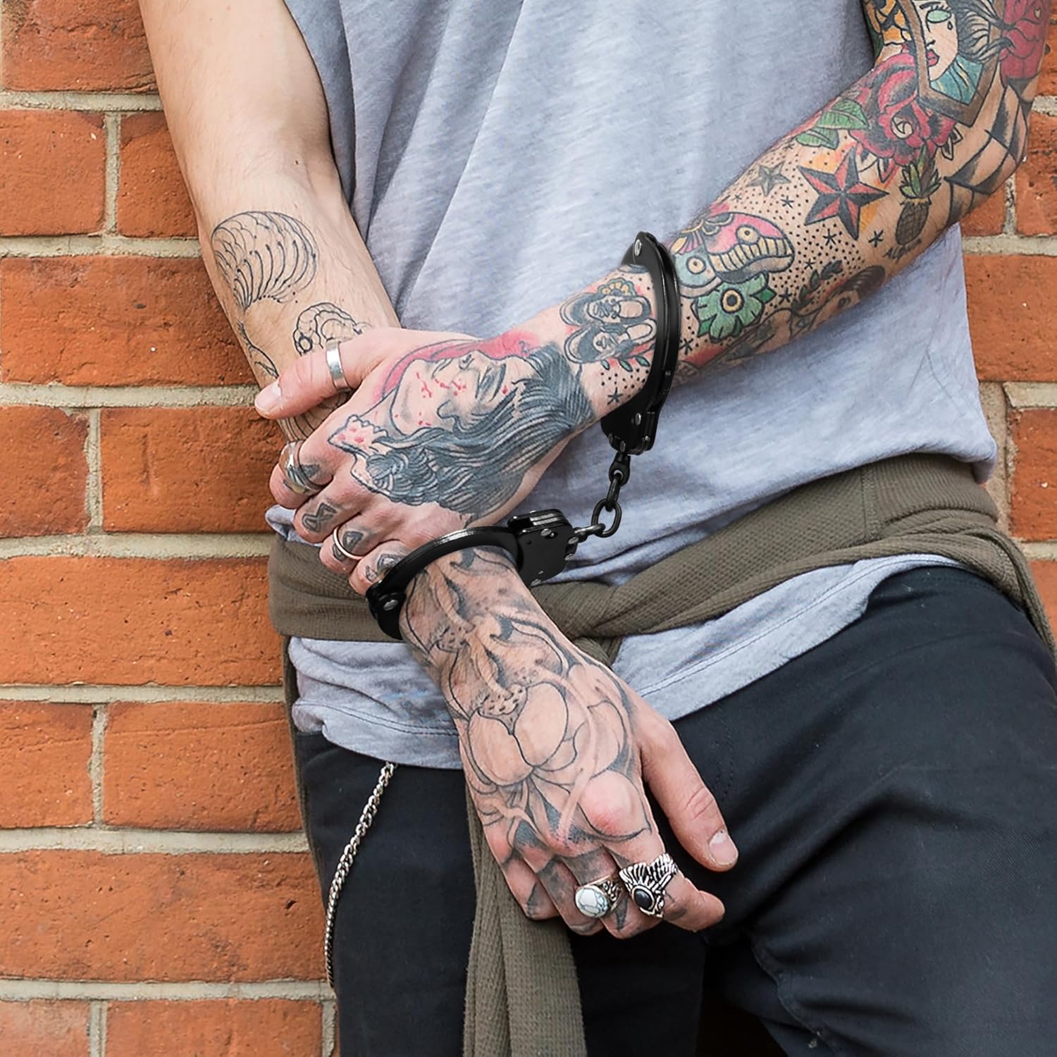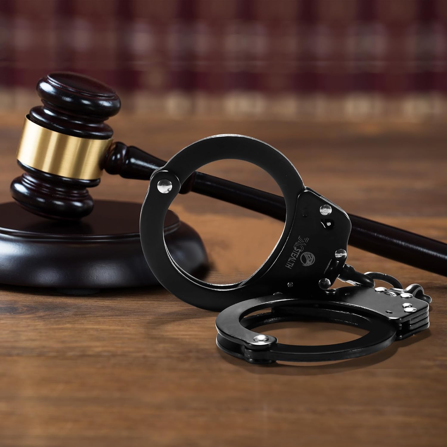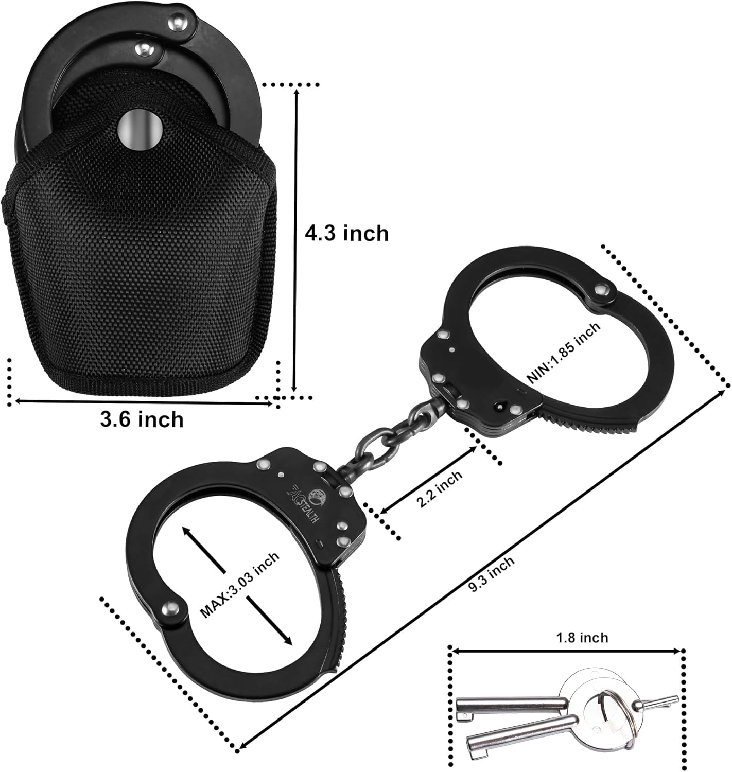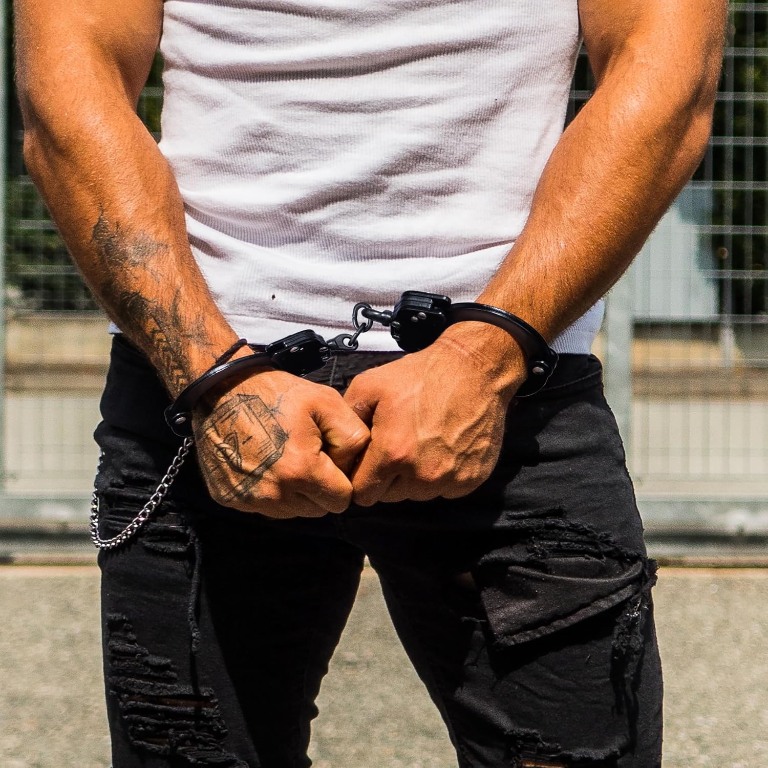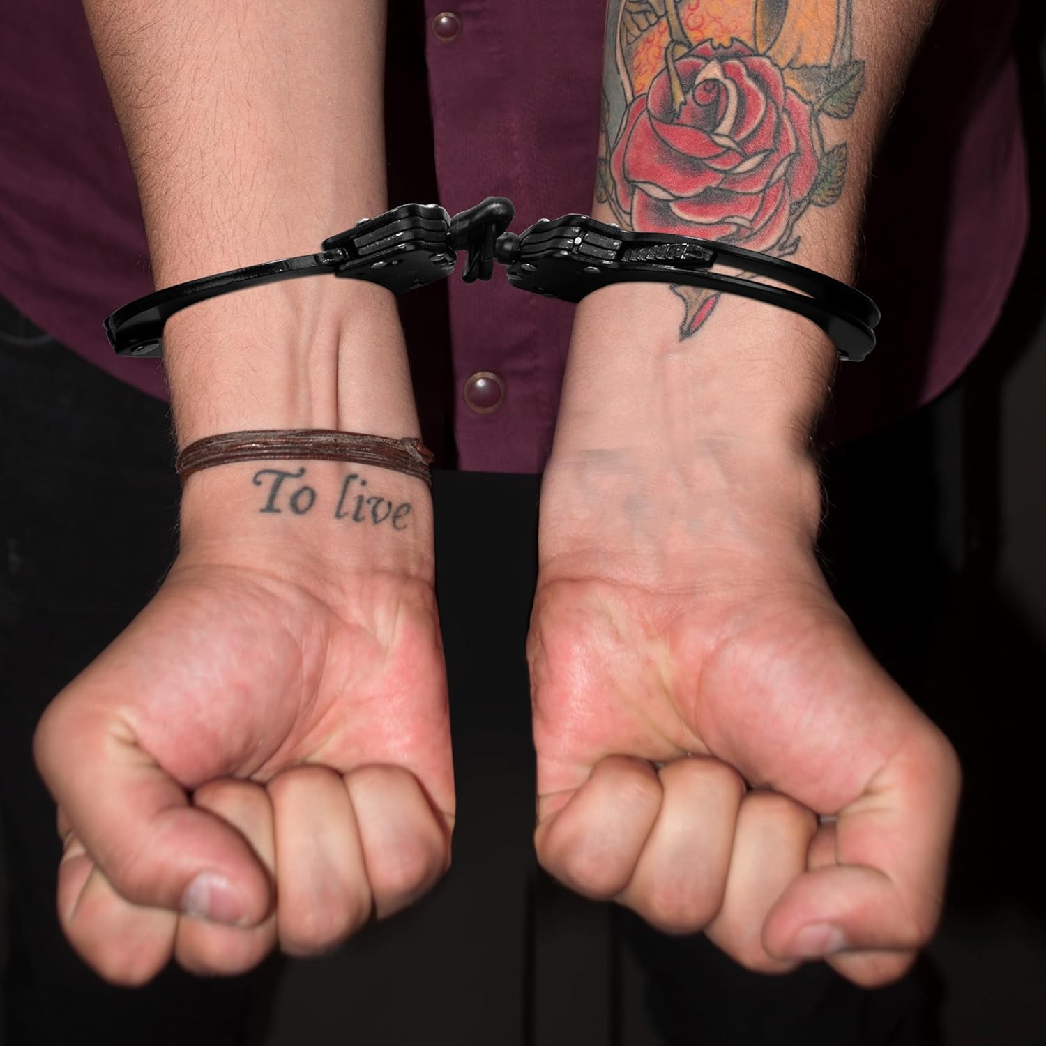 - ✅RUST RESISTANT – The premium black finish of our product makes it protected from rust and unusual weather conditions, making it a durable product. The elegant black finishing not only make the handcuffs rust-resistant but also gives them an intimidated look. With the steel strength and covered protection, these handcuffs are ready for all serious business!