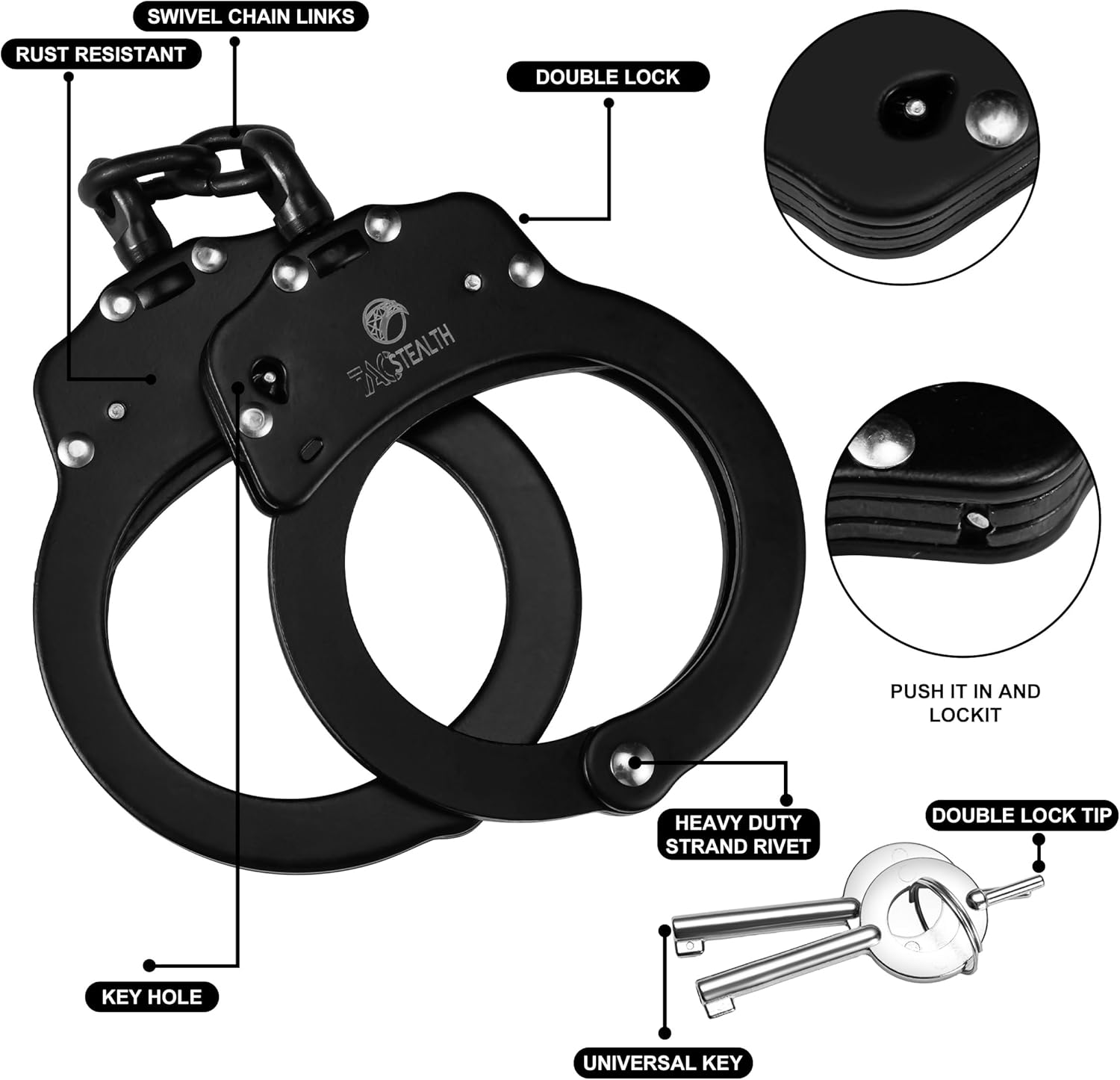 - ✅HEAVY DUTY PRODUCT – TacStealth handcuffs have been made with the best quality material that is serviceable under all conditions. Made with toughest grade steel, these handcuffs can perfectly withstand weight, force and twisting in every direction. No matter how powerful the person is, you can easily trust this product to do its job.